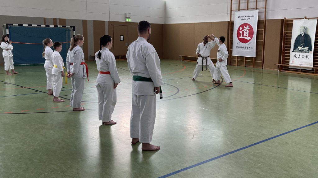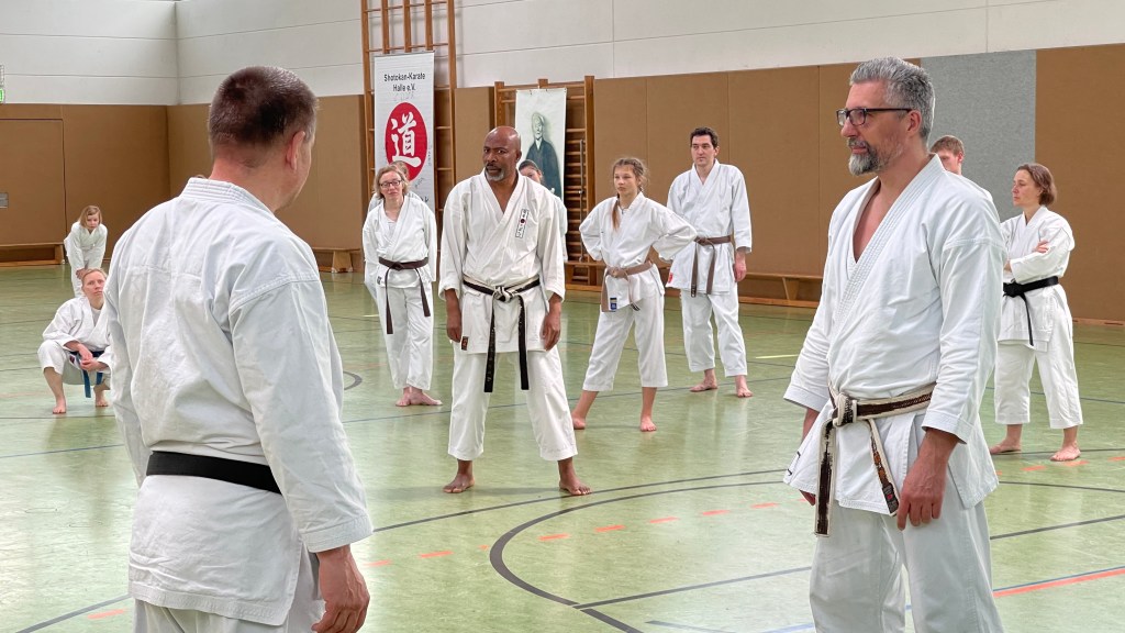 Il y a 20 ans, en avril 2004, Thomas Wilke, Andreas Pieger, Franziska Schneider, Gaby Schwanke et Julia Köhler ont fondé l’association « Shotokan-Karate Halle » pour succéder au département Shotokan de la « Budo Akademie Halle e.V. ». A cette occasion, notre stage anniversaire a eu lieu le samedi 13 avril 2024 dans le gymnase de la Gemeinschaftsschule « Heinrich Heine ». L’entraînement a été dirigé par les senseï Emmanuel Dotse (6e dan), Helge Weiselowski (6e dan) et Tom Wilke (4e dan). Chaque sensei a apporté sa perspective et son style, ce qui a fait de ce stage une expérience riche et variée pour tous les karatékas présents. Nous remercions tous ceux qui nous ont aidés à organiser ce stage et tous les karatékas qui sont venus en nombre ! Oss